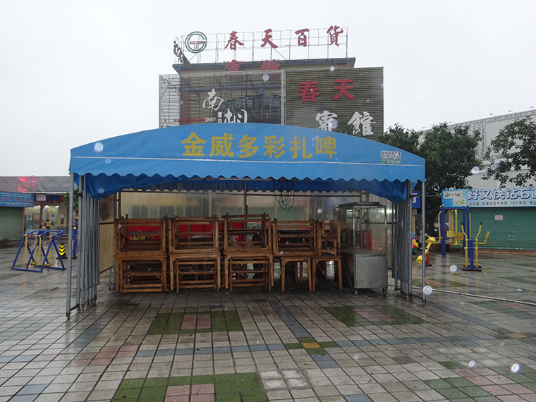 物品簡單搬運:因為大排檔推拉帳篷可以伸縮,所以物品搬運非常方便。無需拆除和再裝配,只需將它收起來,方便存儲和搬運。